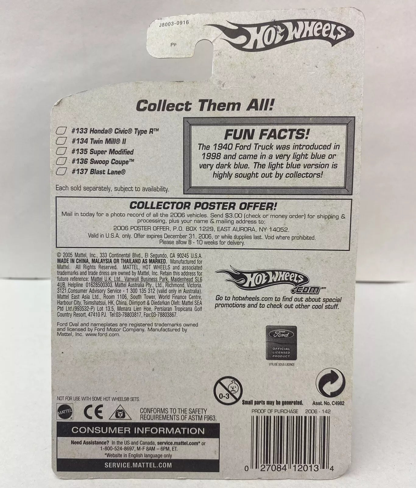 Hot Wheels #142 '40 Ford Truck Flat Black w/ Blue 5SPs 2006 Mainline